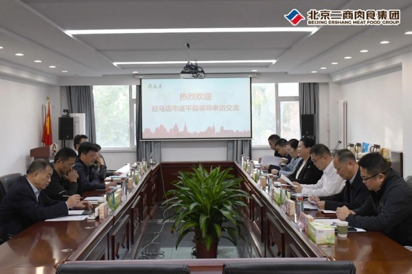 10月17日,河南省遂平县县委书记李振南一行莅临北京二商肉食集团参观座谈,双方围绕肉类产业发展、深化政企协作等方面展开深入交流。北京二商肉食集团党委委员、董事、总经理孙铁新,副总经理张伟杰、徐德江、常宏 志及驻马店大红门公司相关负责人热情接待。